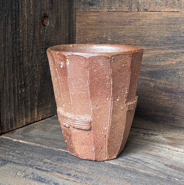 備前焼のフリーカップ 削ぎのデザインが唯一無二です。 手しごとならではの作品 サイズ 口径 約 8.5 cm 高さ 約 10 cm 写真をご参照ください ※土も手作りしており、力強さを出そうと荒い土にする為に石の砕き具合、取り除き加減 などを変え、反対に優しい柔らかい雰囲気にする為に 水簸(すいひ)したりと思考して作っています。 その為、荒い土ですと石爆ぜ(いしはぜ)と呼ばれる備前焼特有の景色が出ることがありますが、これは粘土に含まれる石が焼成中に粘土の収縮差によって爆ぜて顔をのぞかせるものです。普通傷にも見られそうなものですが、備前焼ではそのような自然のアクシデントが産む景色に、特に美を見出し景色として鑑賞し古くから「侘び寂び」の美として愛されてきました。 こちらの作品にも見られますが是非 「美」としてご鑑賞ください ご覧いただきありがとうございます。 まとめてご購入頂きますとお安くなります。 お問い合わせくださいませ。 ※色味について※ 写真は光の加減やモニター環境により、実際の色味と異なって見える場合がございます。あらかじめご了承くださいませ 備前焼の魅力は『窯変』にあります」 窯の中で炎や灰が作り出す偶然の模様「窯変(ようへん)」によって、一つひとつ異なる色合いや表情が生まれます そのため写真での完全な表現は難しく自然光の下で見ると、写真よりも落ち着いた渋い色合いや、土の温もりが感じられる場合がございます。 【返品・交換について】 「実際の色味はモニター環境等により異なりますので、返品理由としてご容赦ください」 ・手作りのため色・風合いの違いは返品対象外となります。 ・不良品や配送中の破損は到着後7日以内にご連絡ください。 ・商品に欠陥がある場合をのぞき基本的には返品には応じません。 以上 ご確認の上、よろしくお願いいたします。
