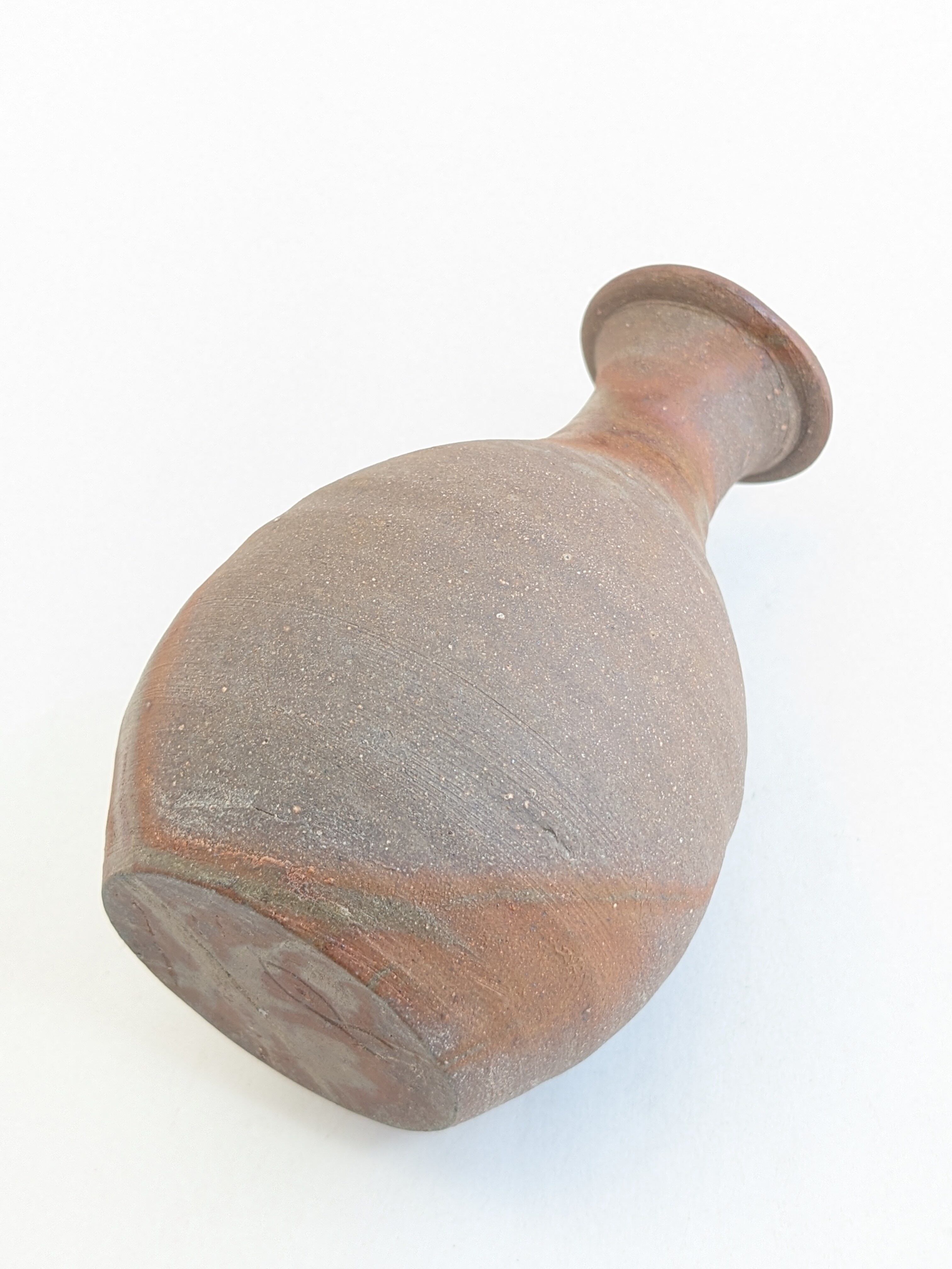 緋襷(ひだすき)のものは白い物がほとんどですが、この一輪は還元炎の中 煙にまかれ渋みのある色合いとなっております。