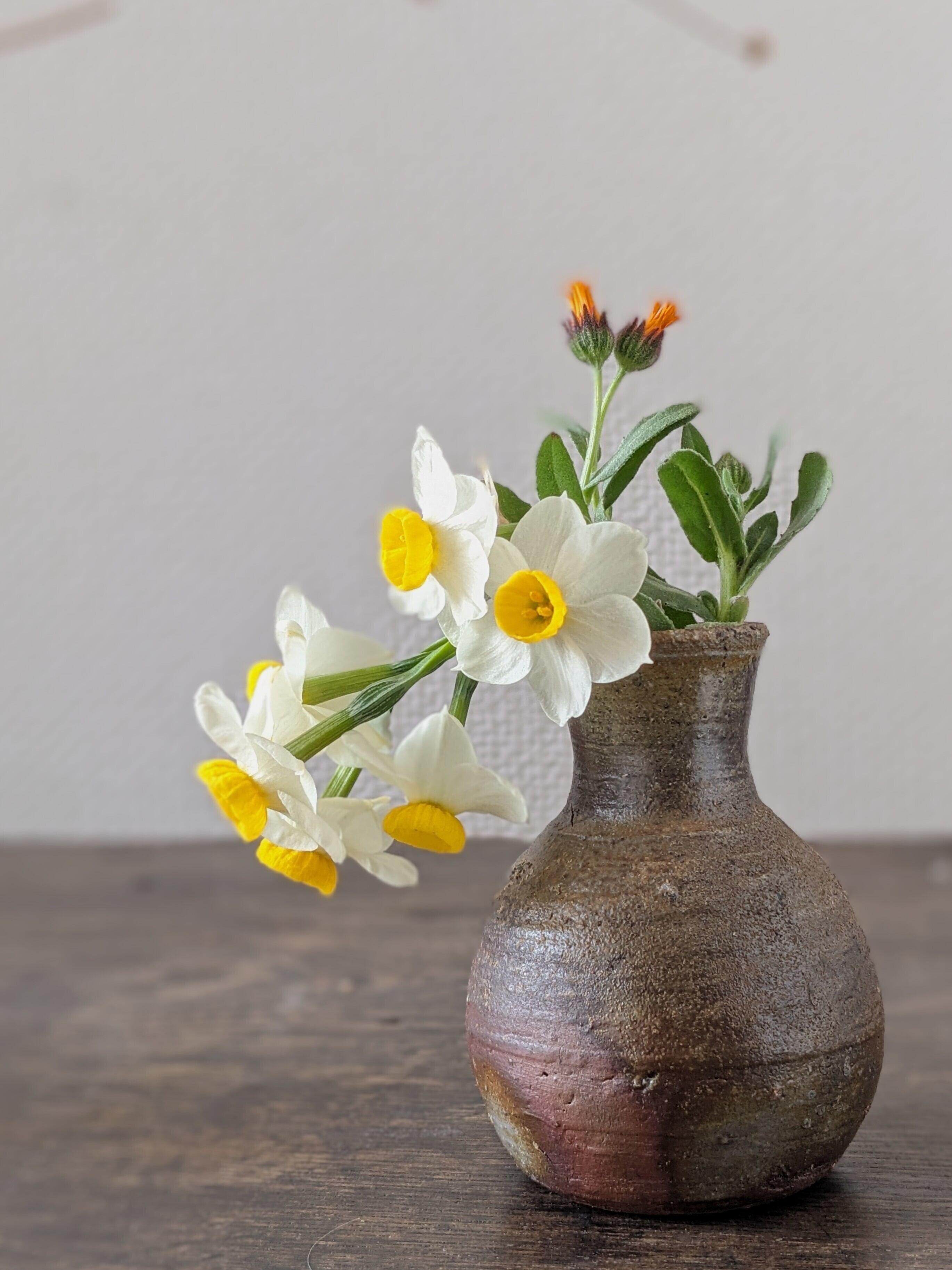 無釉焼き締めの備前焼は野に咲く花や花木がよく似合いますので