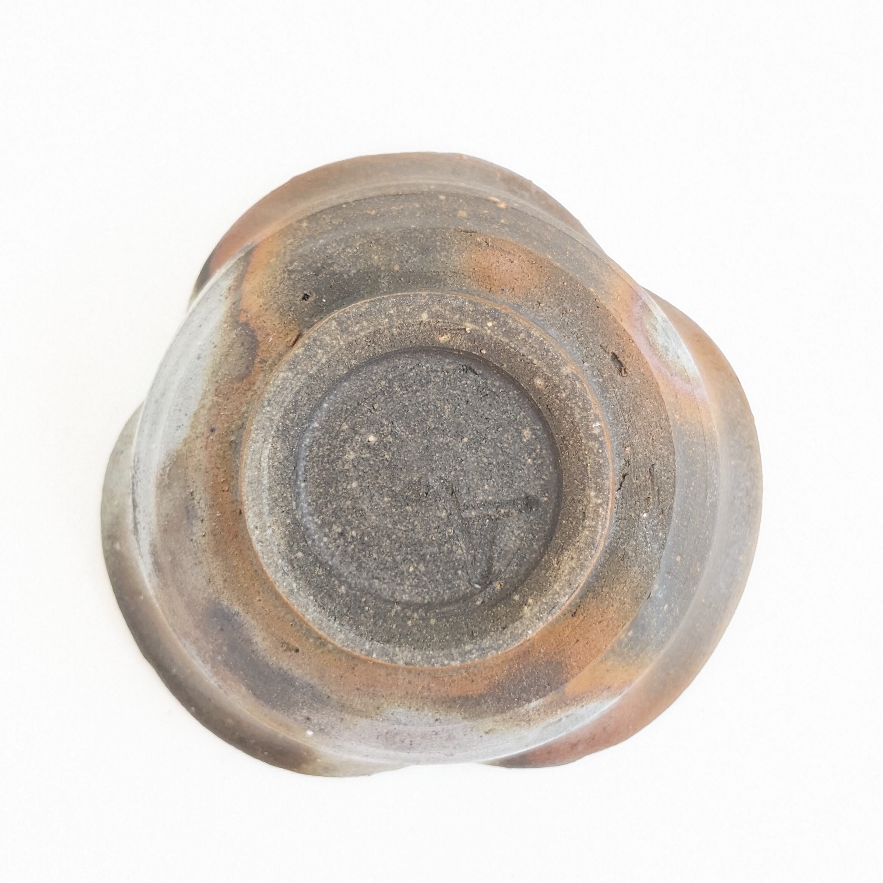 備前焼 輪花三方小鉢 - 三方向に広がる花弁の優雅な佇まい
