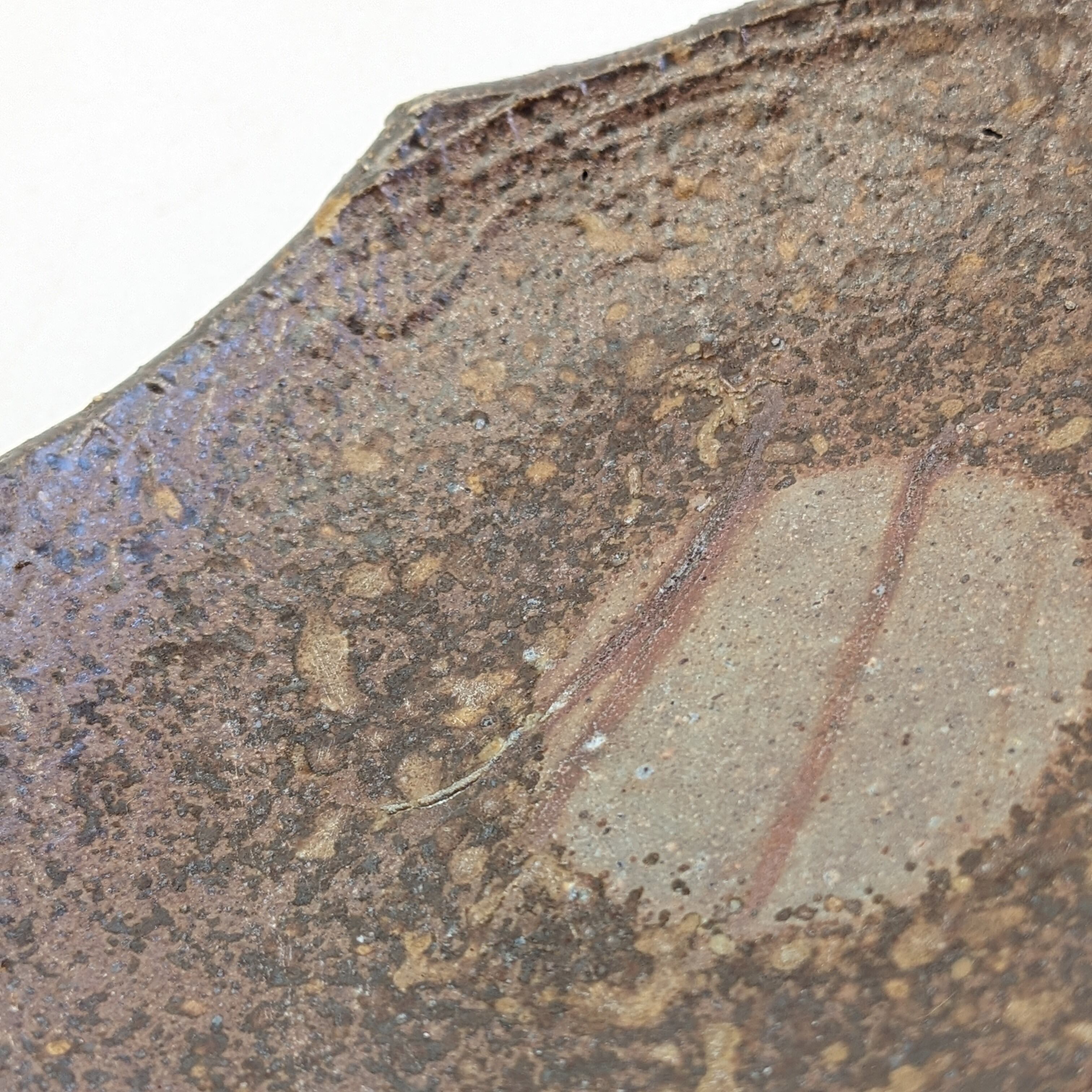 その為、荒い土ですと石爆ぜ(いしはぜ)と呼ばれる備前焼特有の景色が出ることがありますが、これは粘土に含まれる石が焼成中に粘土の収縮差によって爆ぜて顔をのぞかせるものです。普通傷にも見られそうなものですが、備前焼ではそのような自然のアクシデントが産む景色に、特に美を見出し景色として鑑賞し古くから「侘び寂び」の美として愛されてきました。