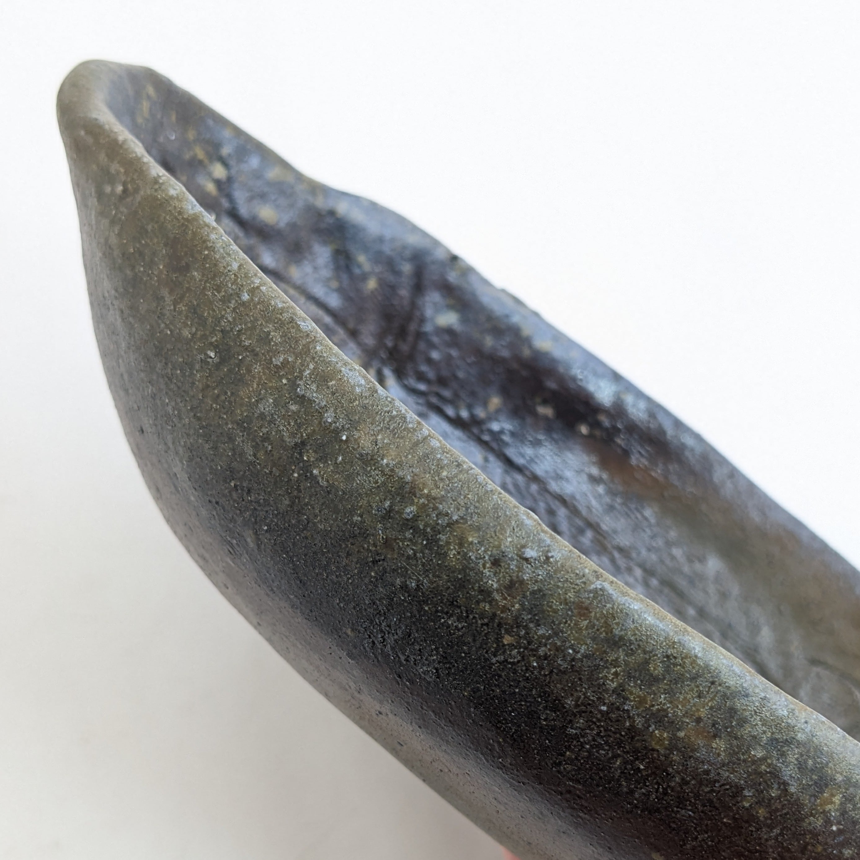 備前焼は、窯の中で炎や灰が作り出す偶然の模様「窯変(ようへん)」によって、一つひとつ異なる色合いや表情が生まれます。自然光の下で見ると、写真よりも落ち着いた渋い色合いや、土の温もりが感じられる場合がございます。
