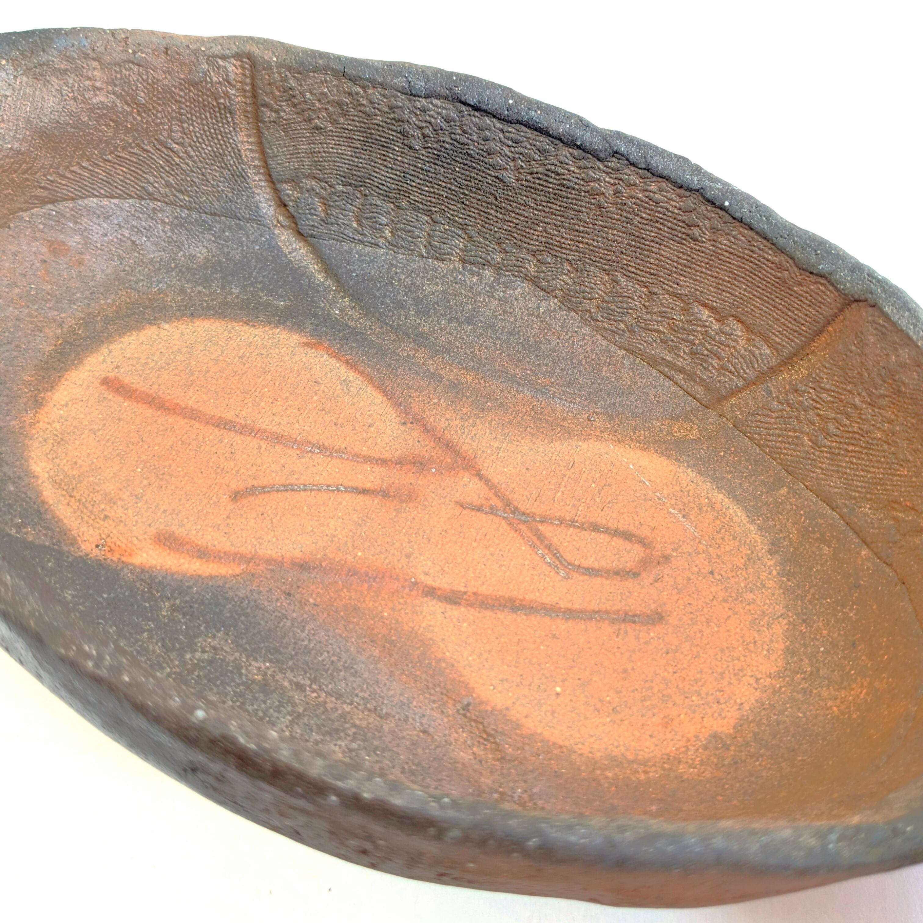 備前焼は、窯の中で炎や灰が作り出す偶然の模様「窯変(ようへん)」によって、一つひとつ異なる色合いや表情が生まれます。自然光の下で見ると、写真よりも落ち着いた渋い色合いや、土の温もりが感じられる場合がございます。