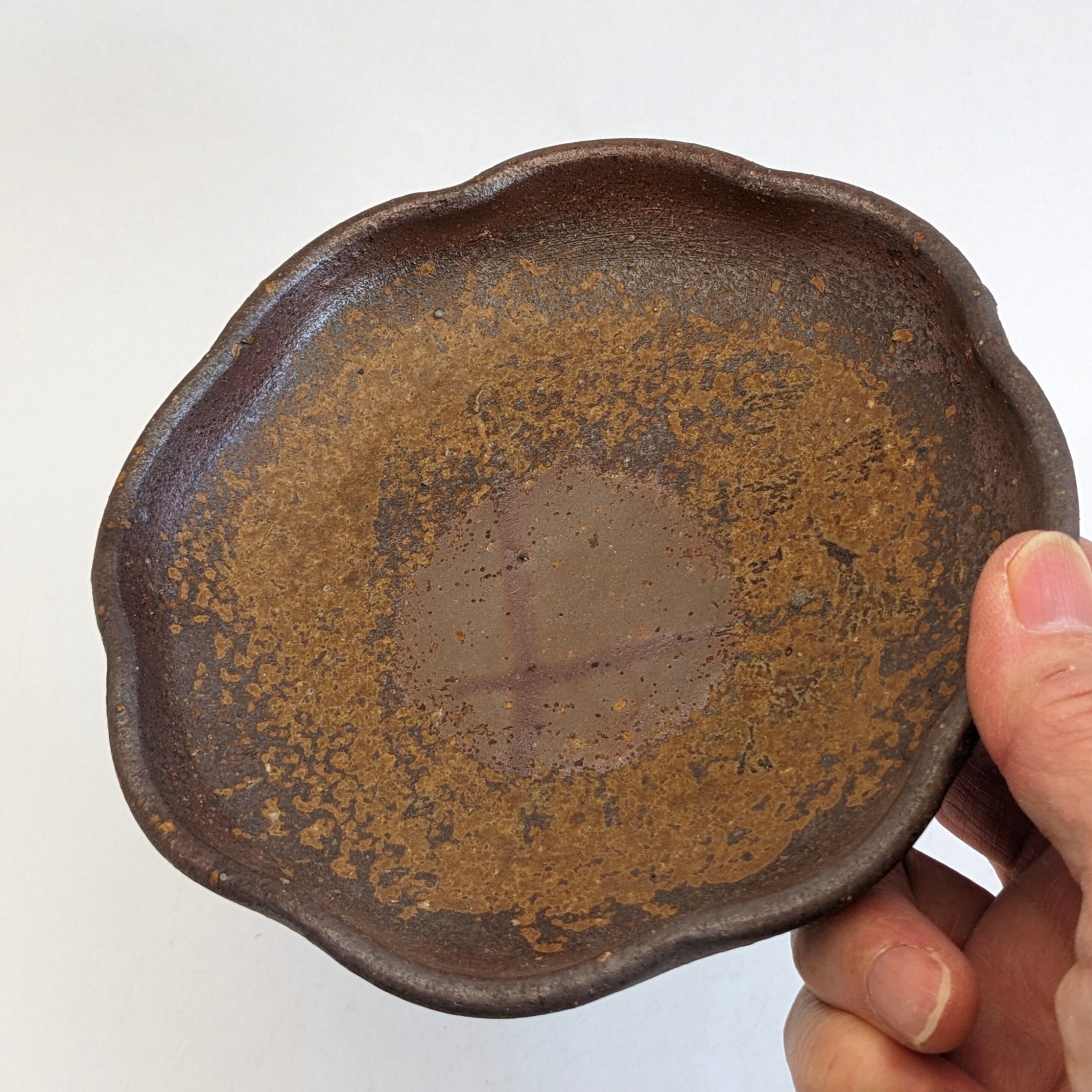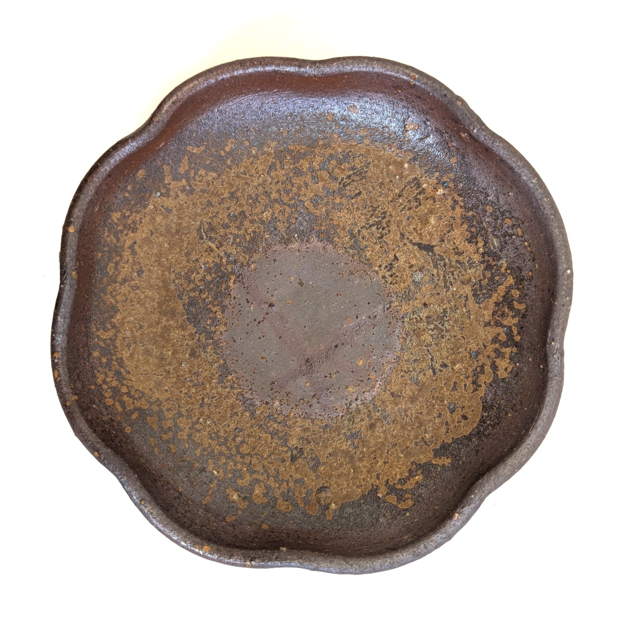 この輪花皿も『窯変』の魅力が詰まっており、窯の中で生まれる偶然の模様によって、ひとつひとつ異なる表情が楽しめます。自然光の下では、写真よりも柔らかい色合いや温もりを感じることができるかと思います。