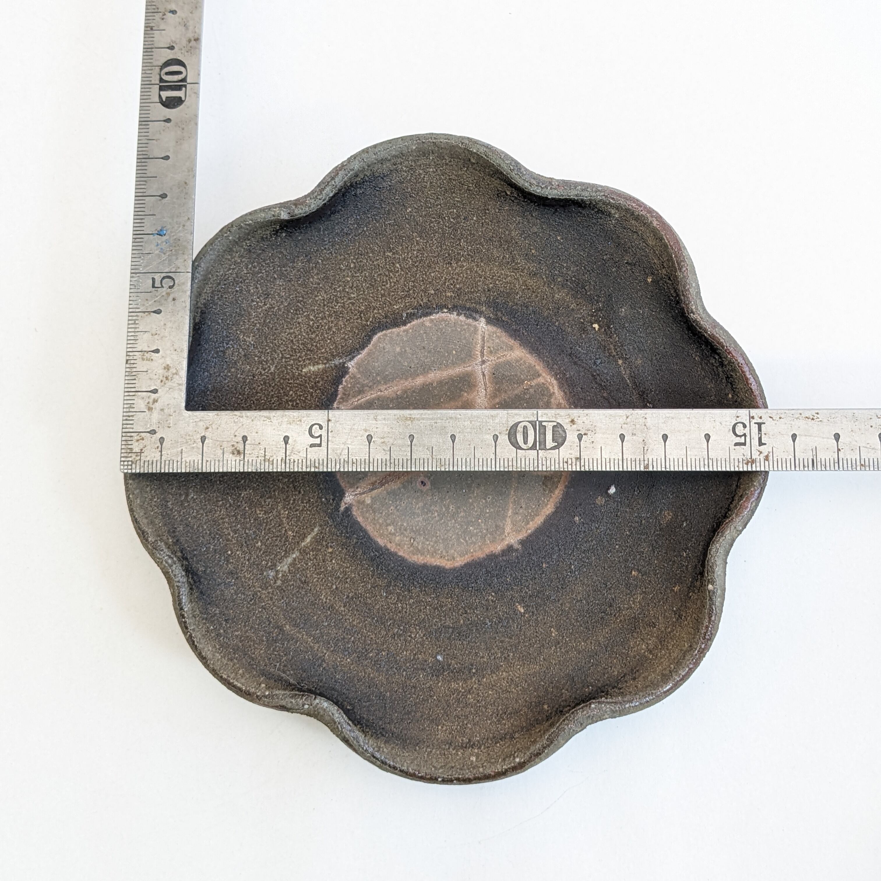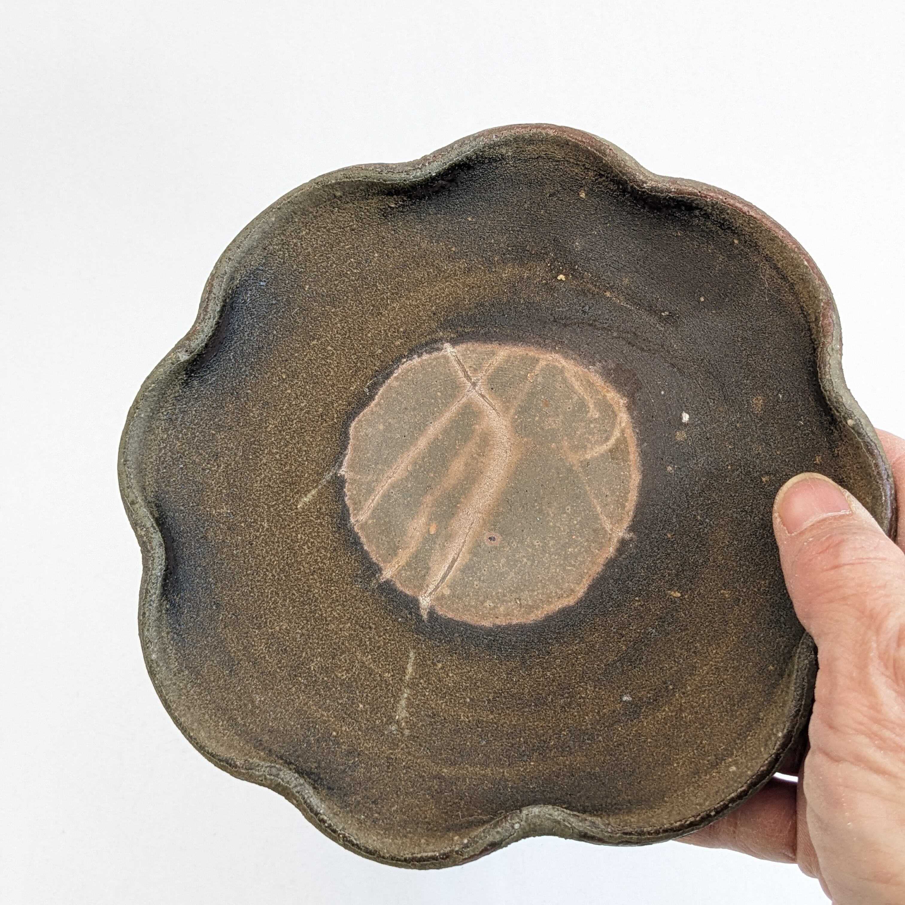 日常の取り皿としてはもちろん、銘々皿や小皿としても大変使いやすい一品です。やわらかな花びらの形状が渋さの中にも可憐さを加え穏やかな時間を暮らしに与えてくれるはずです。手作りならではの温もりを感じながら、食卓に華やかさを添えることで、特別なひとときを演出することができるのではないでしょうか。