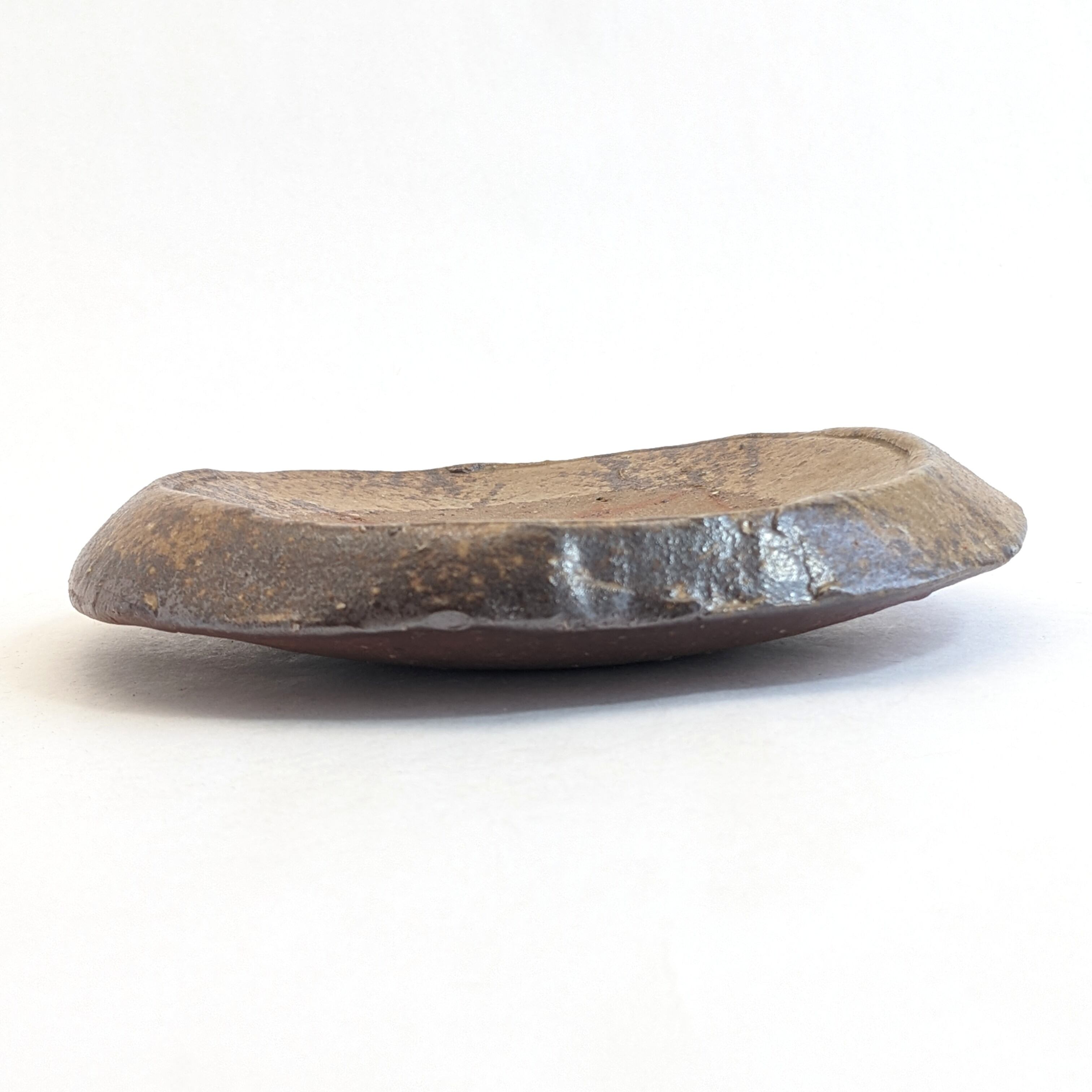 重厚感のある土の塊のようなタタキ皿、叩いて叩いてざっくり切って荒々しく仕上げました。