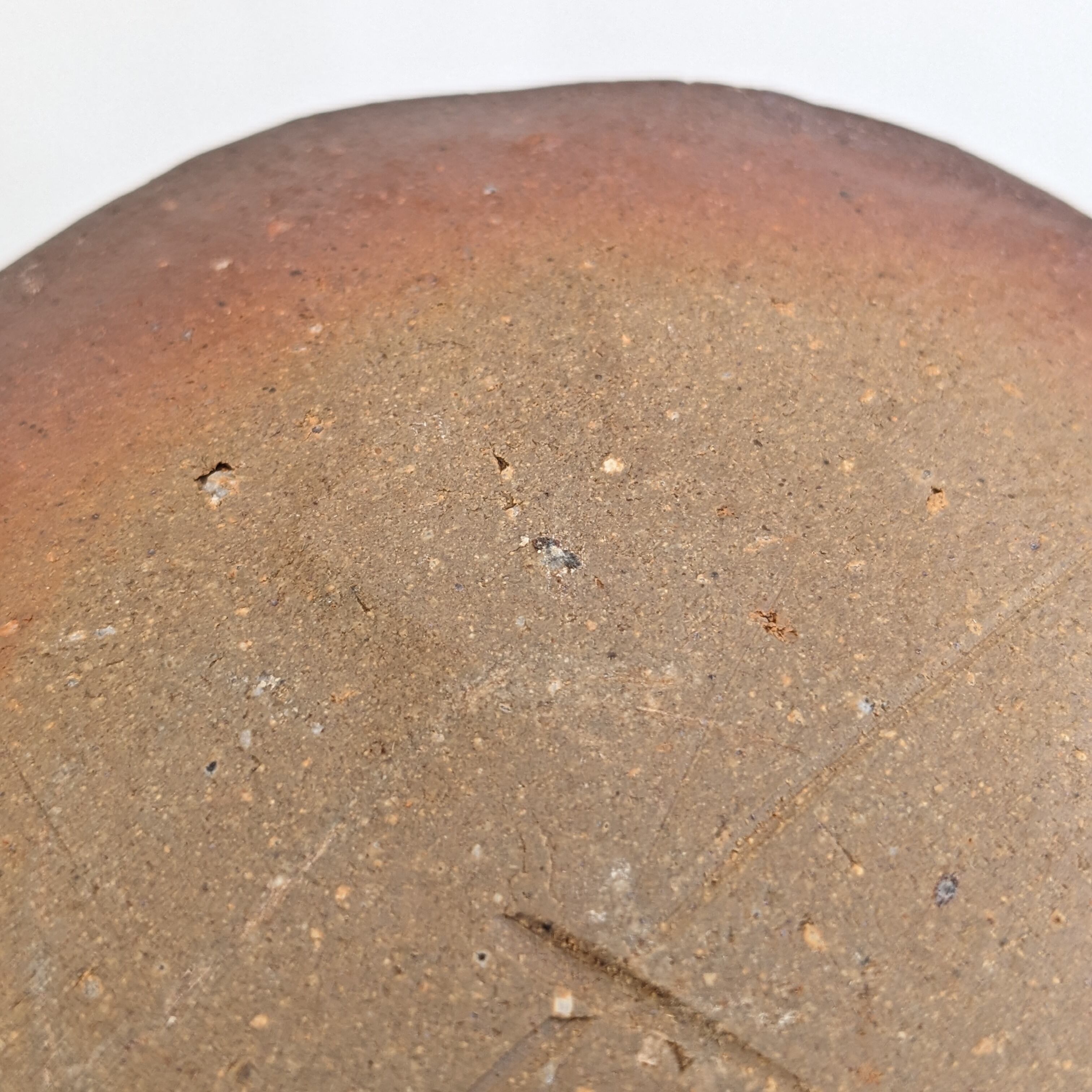 その為、荒い土ですと石爆ぜ(いしはぜ)と呼ばれる備前焼特有の景色が出ることがありますが、これは粘土に含まれる石が焼成中に粘土の収縮差によって爆ぜて顔をのぞかせるものです。普通傷にも見られそうなものですが、備前焼ではそのような自然のアクシデントが産む景色に、特に美を見出し景色として鑑賞し古くから「侘び寂び」の美として愛されてきました。