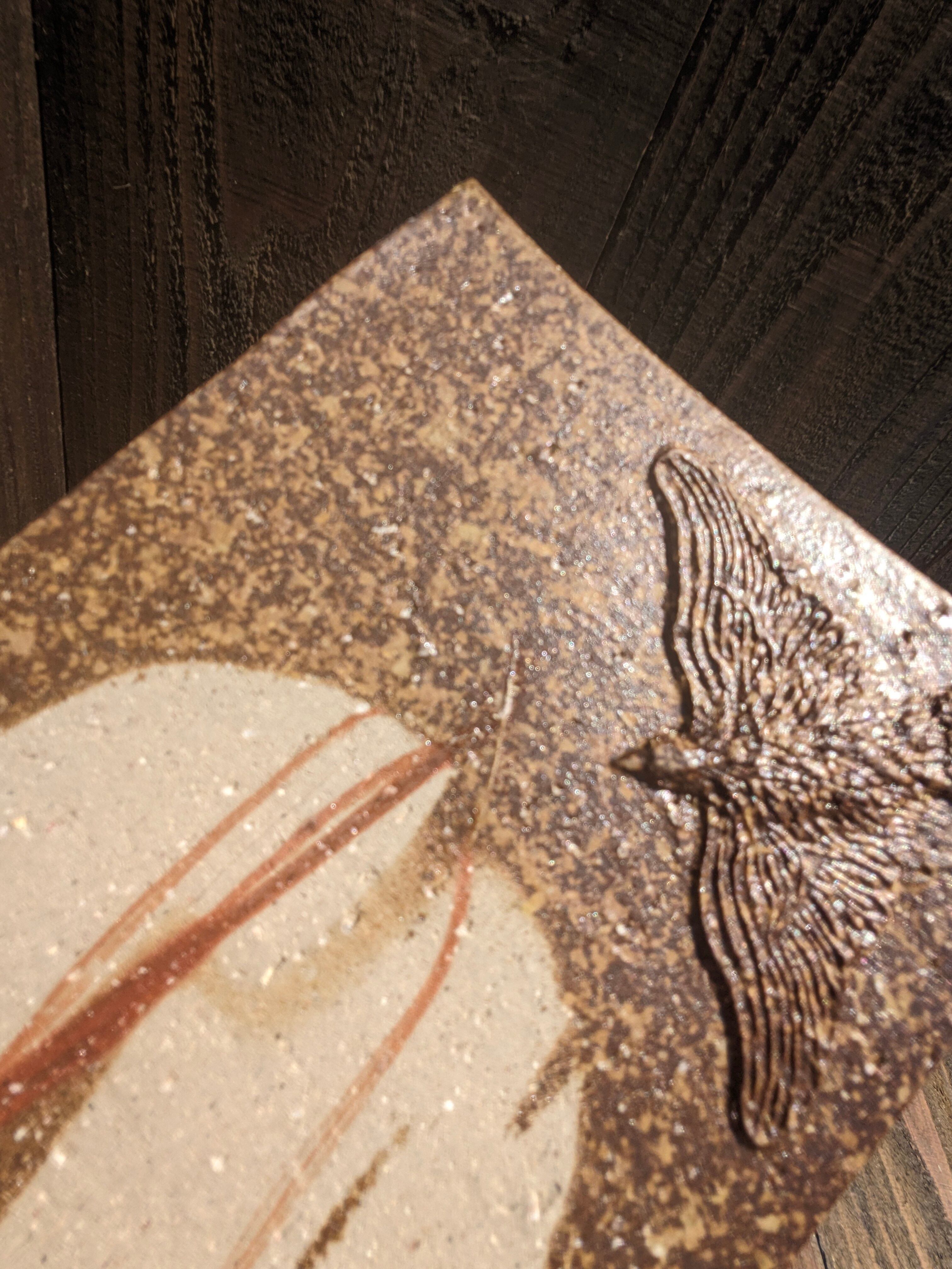 そのため写真での完全な表現は難しく自然光の下で見ると、写真よりも落ち着いた渋い色合いや、土の温もりが感じられる場合がございます。