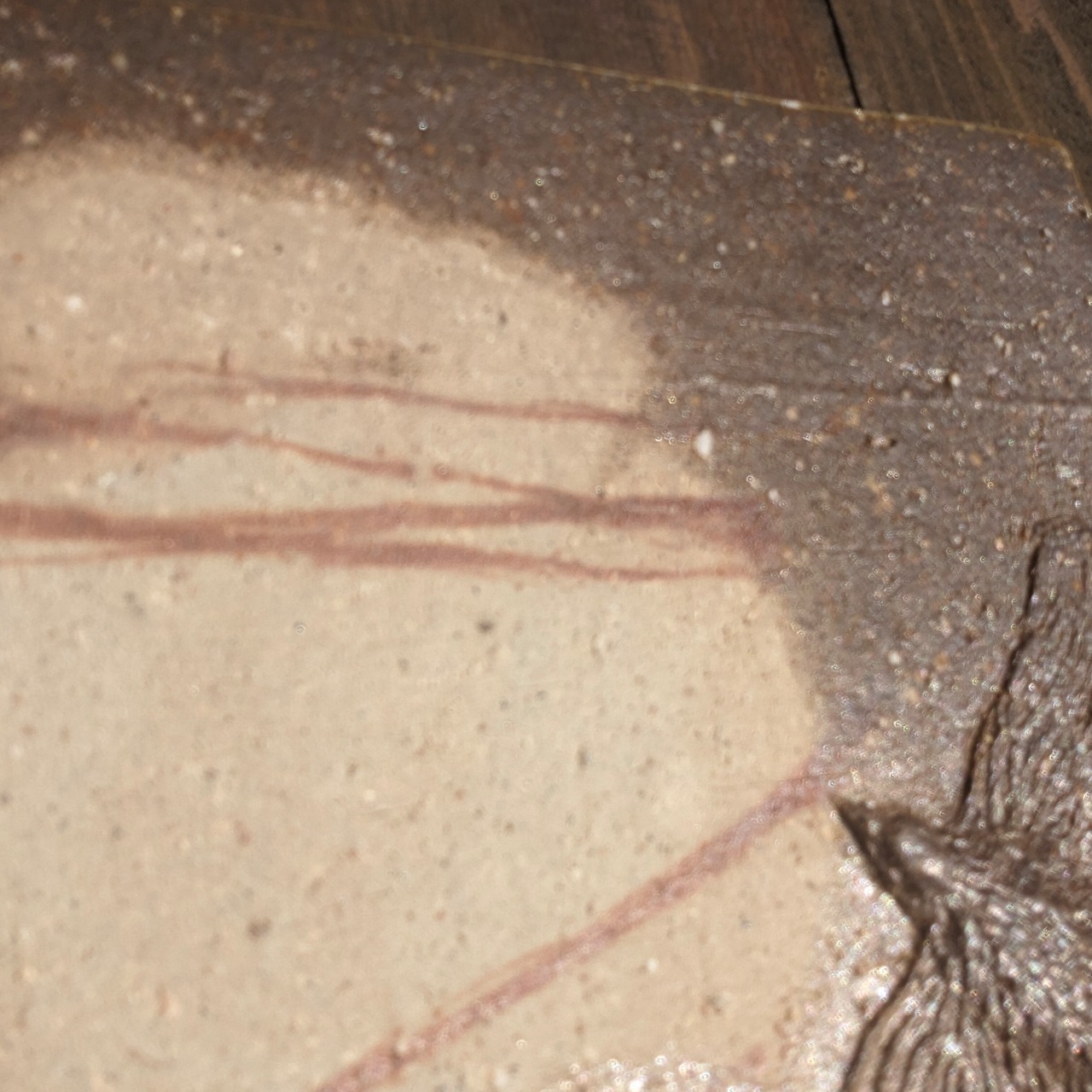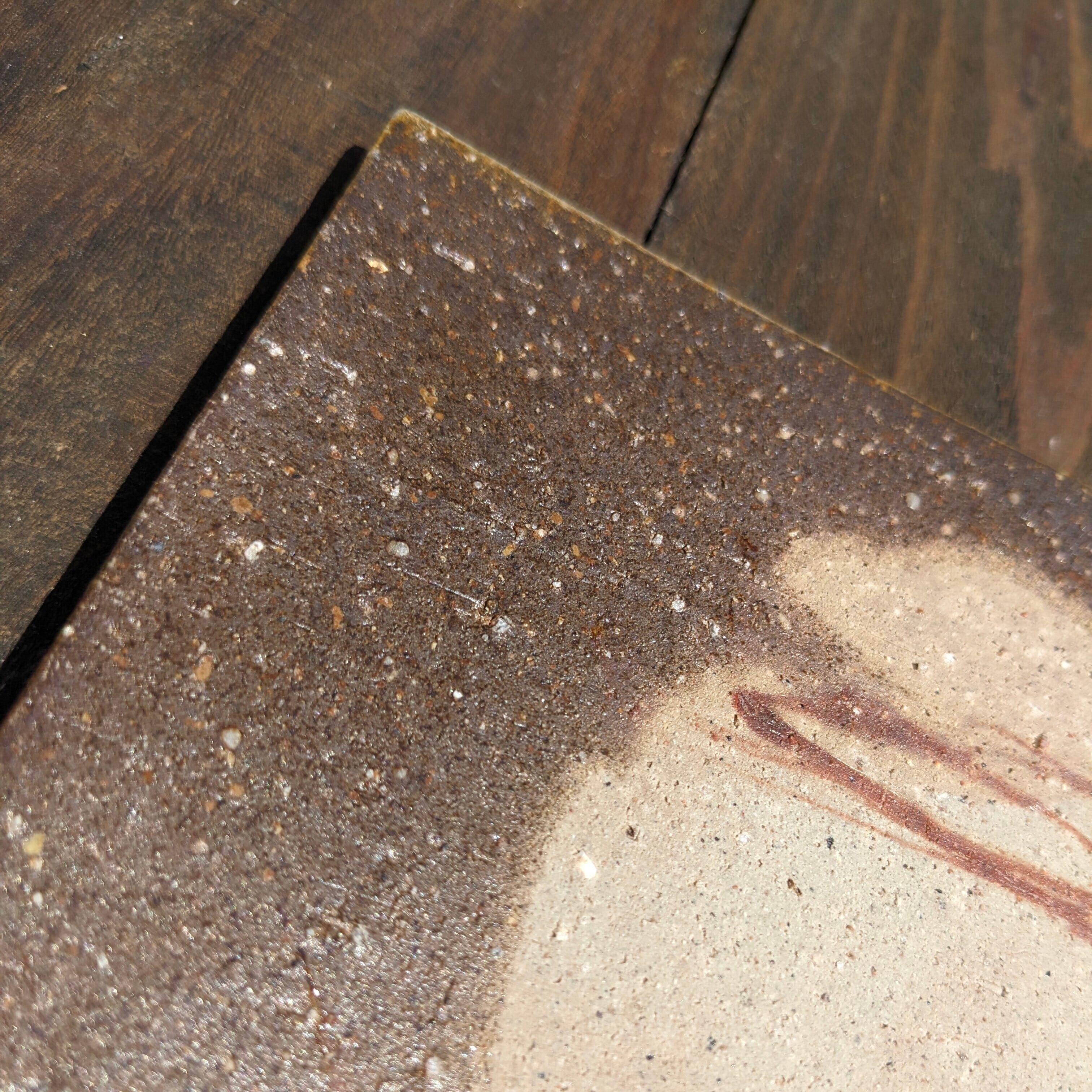 そのため写真での完全な表現は難しく自然光の下で見ると、写真よりも落ち着いた渋い色合いや、土の温もりが感じられる場合がございます。