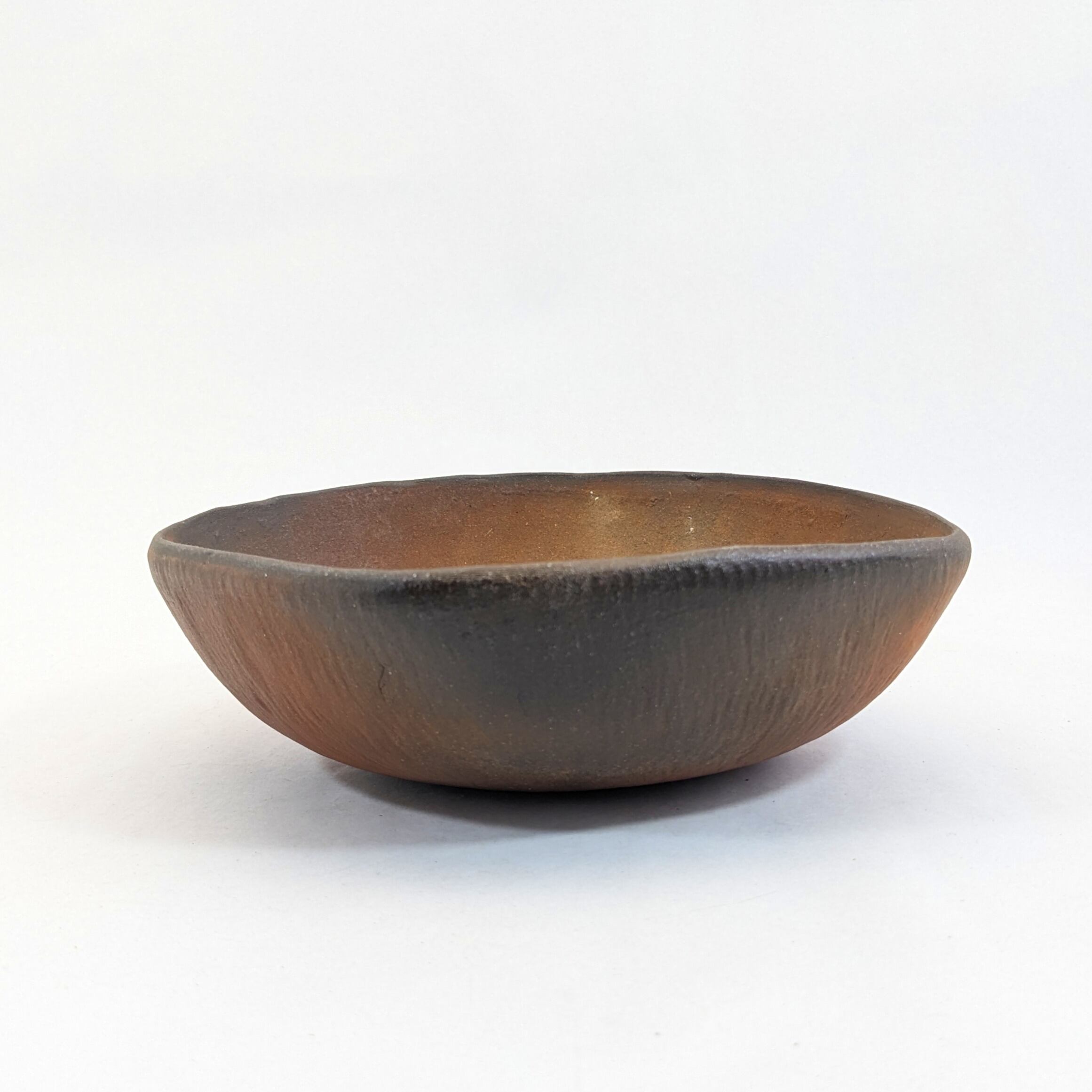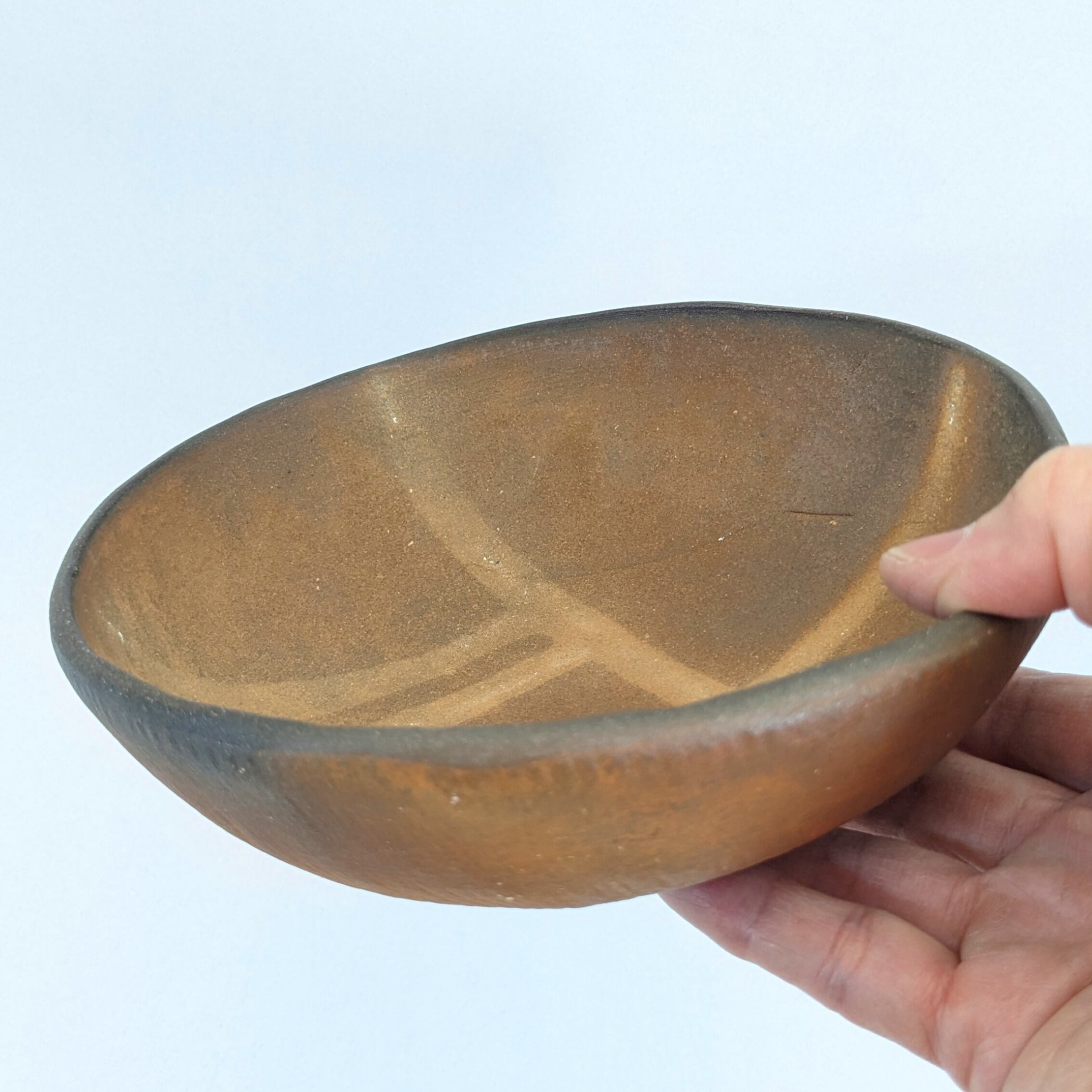 木の道具で叩き土を締めて成形しました。ろくろ引きとはまた違った手作りの風合いが魅力の器です。外側についているタタキの模様も穏やかな手作りの温かさを醸しだすのに一役かっていると思います。